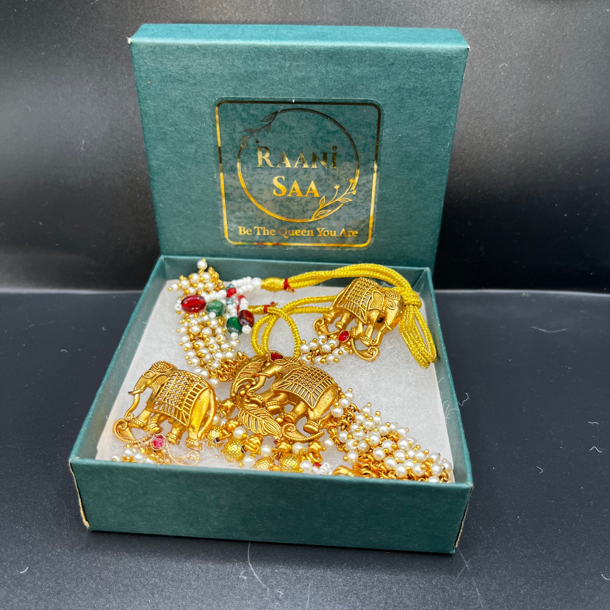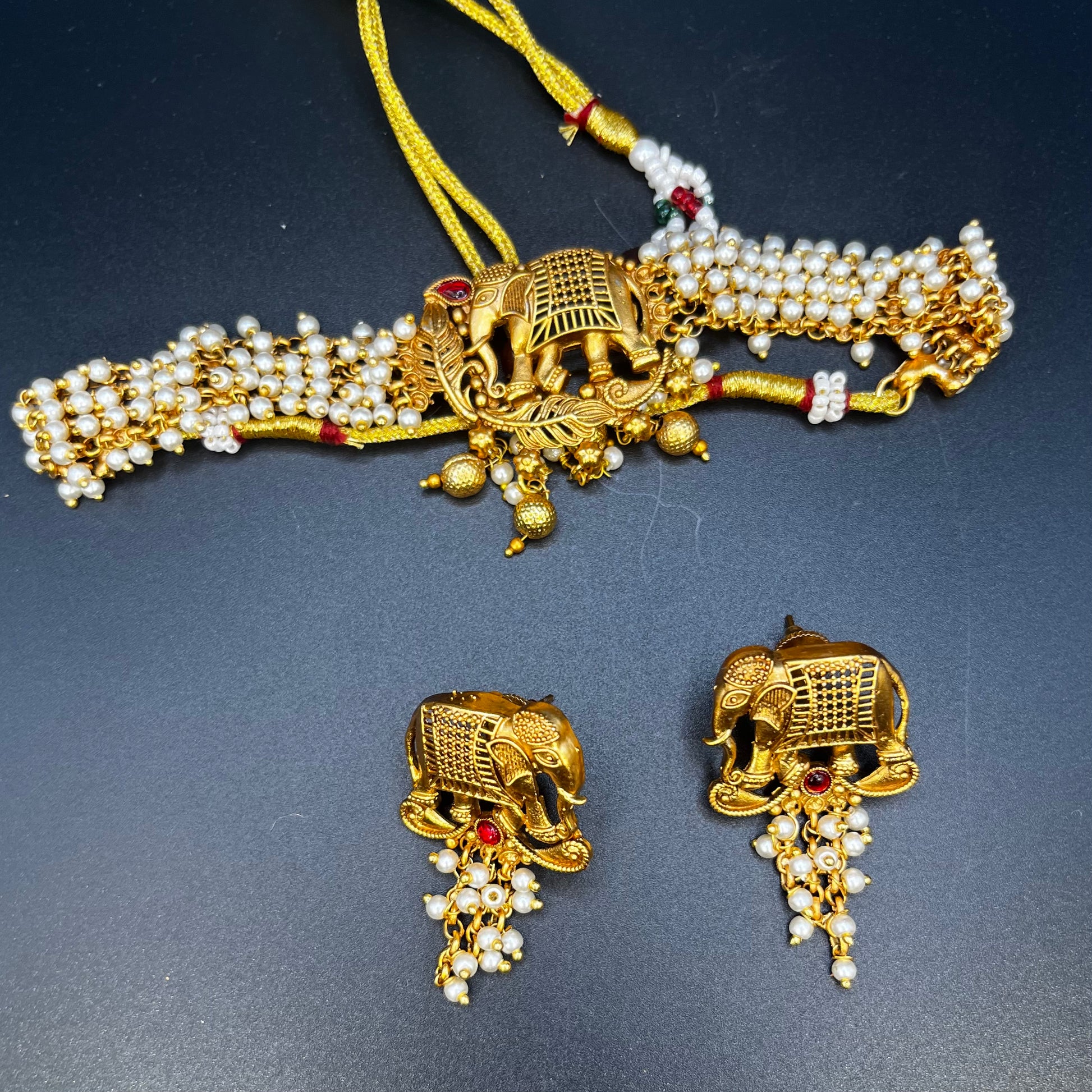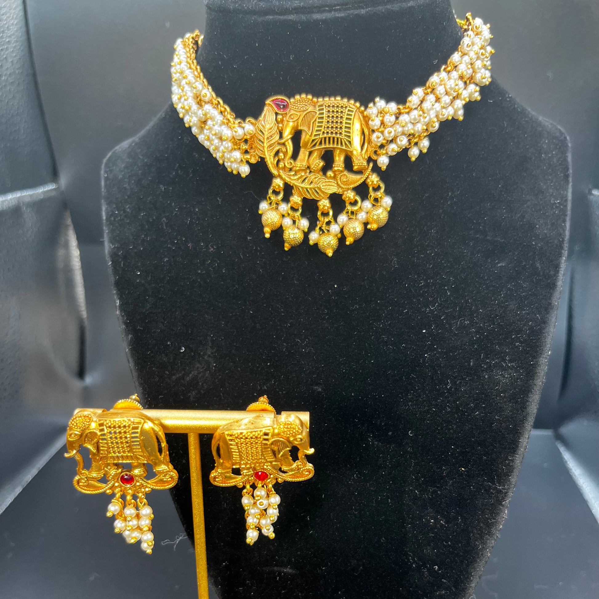 Made in pure brass with pearl choker detailing and red kempu stones RP012