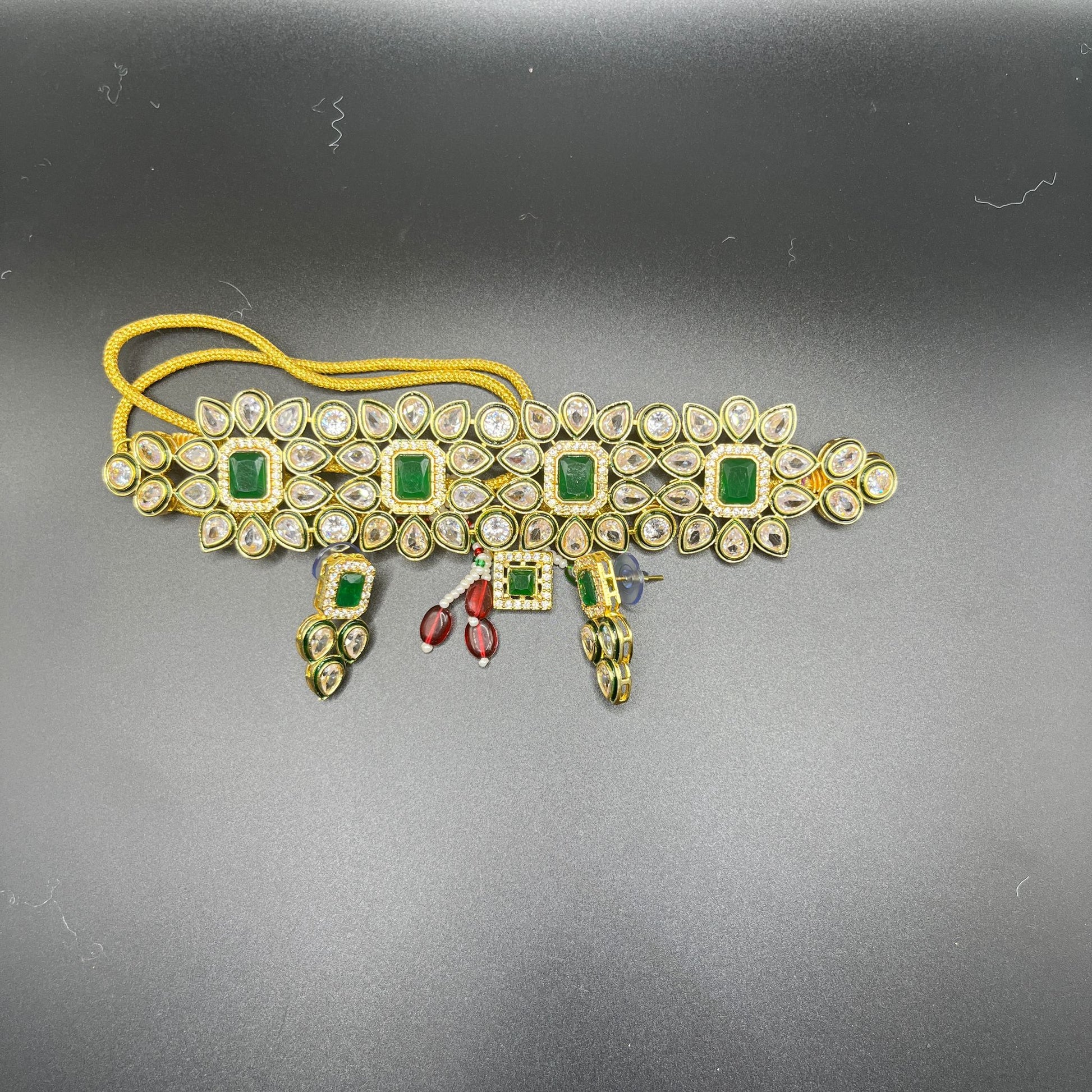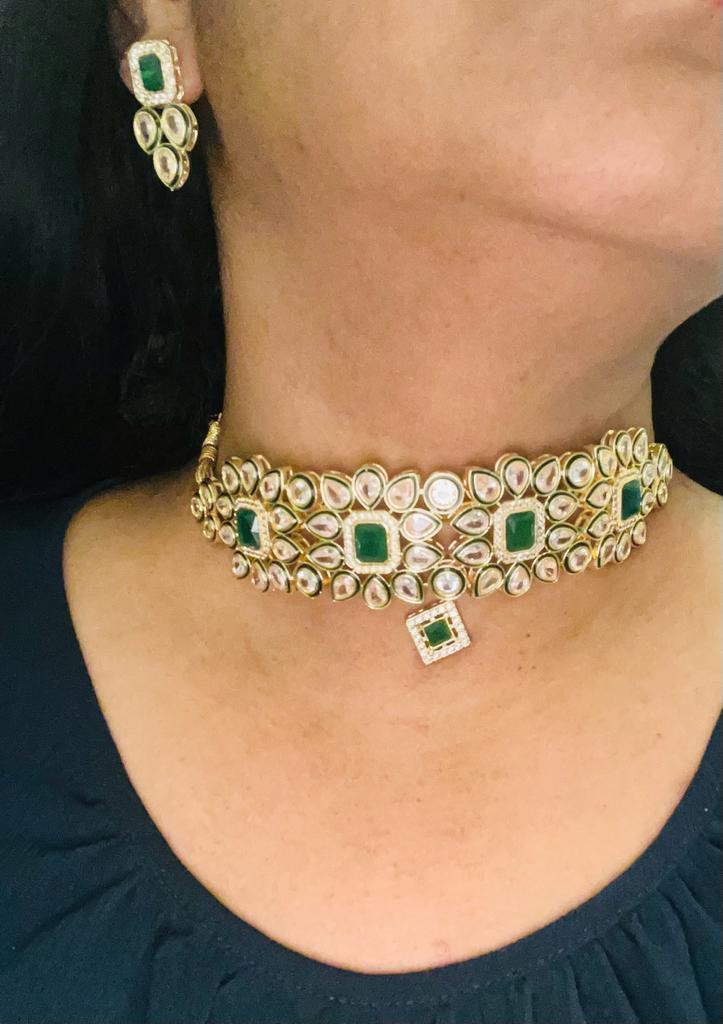 RP-008 Kundan Choker with green stones and small earrings.